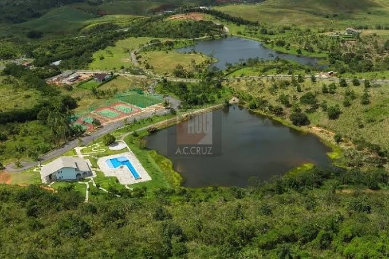 Com 995.000 m2 de área sendo 30% destinadas aos imóveis residenciais , oferecendo conforto e segurança para a sua família, com excelente área de lazer distribuída entre clube com grande área externa , piscina adulto e infantil, deck, churrasqueira, salão de festas com cozinha , spa com fitness, duas quadras de tênis, campo para futebol gramado , além de um lindo lago com deck com vista para o pôr do sol.